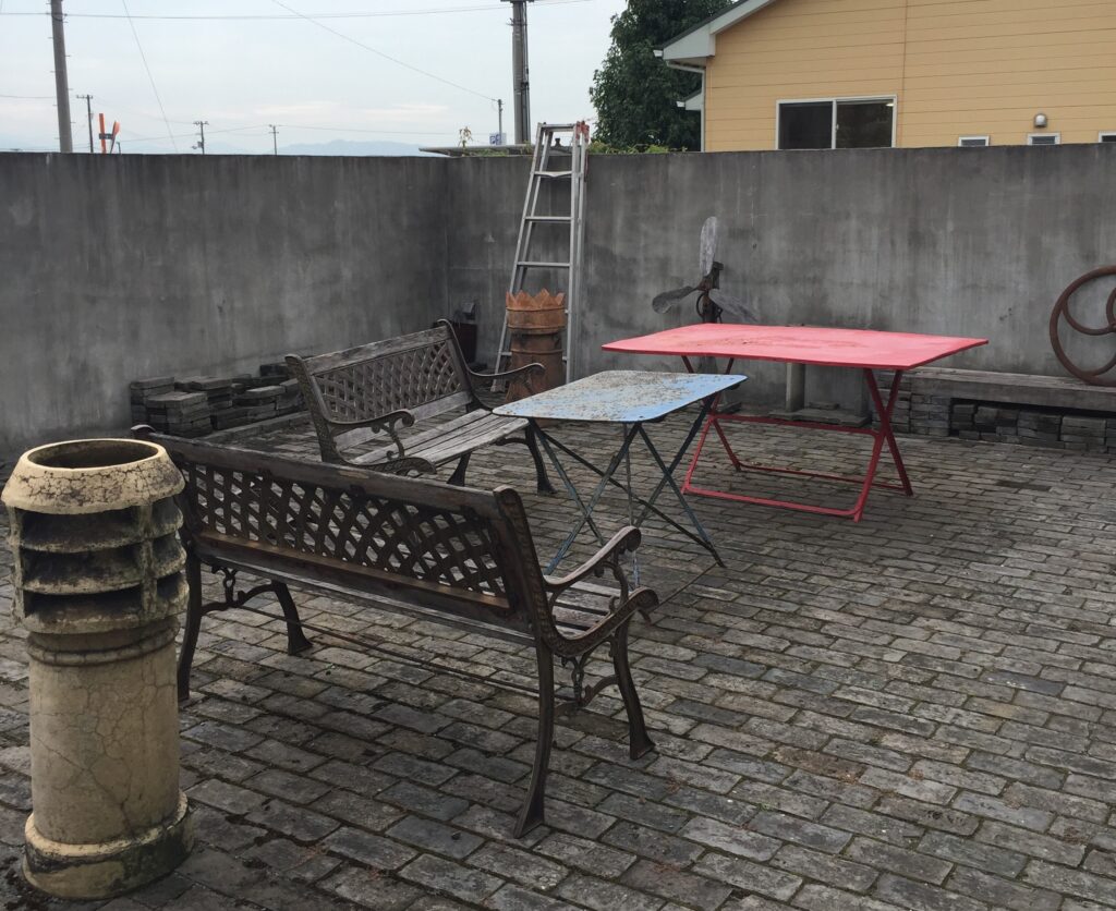 ベンチやテーブルもダメージ加工のあるレトロなものを使用していて、夏なんかはテラスでゆっくりできれば贅沢ですね。