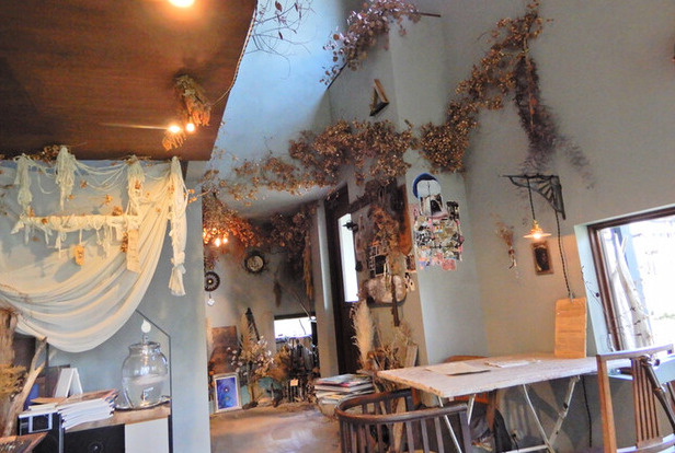ペイントやドライフラワーで飾られた店内で店全体がアートのような面持ちでインテリアを楽しみながら過ごすことができます。