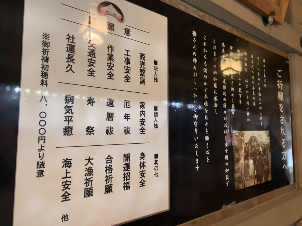 曲がってすぐのところにご祈祷される方への案内があるので、法人や個人の方でご祈祷したい項目がある人はこちらより確認できます。