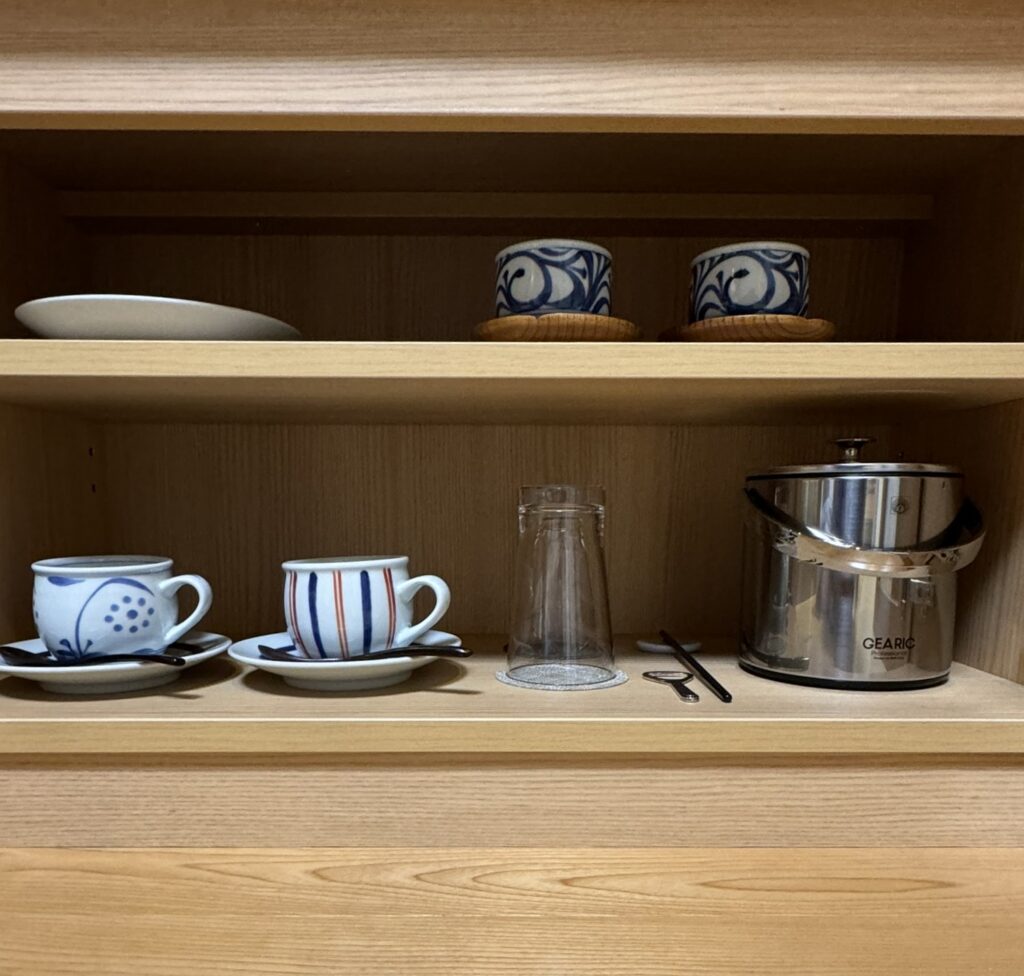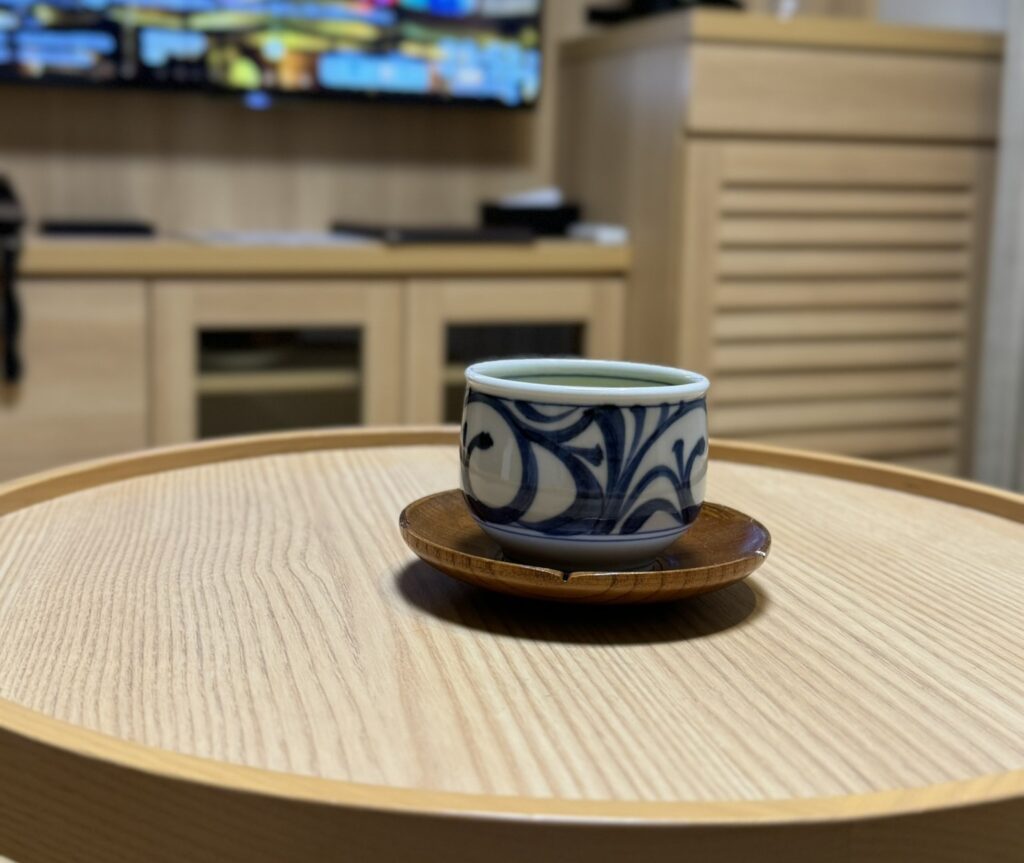 砥部焼の湯のみで飲み物を飲む事ができ、愛媛を感じさせる演出が所々にちりばめられている印象です。