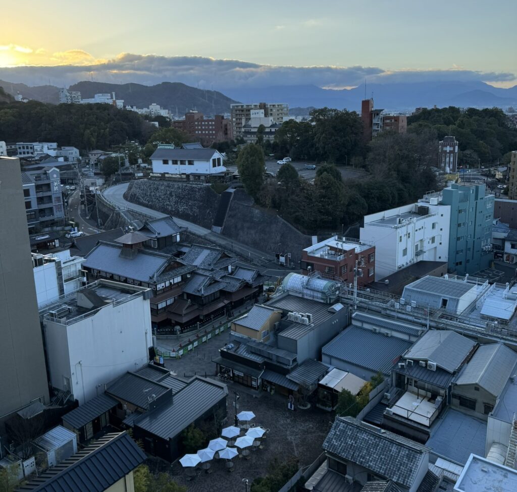 ホテルのちょうど下には、道後温泉の建物が見え静まり返った朝方の道後も魅力的でしたね。