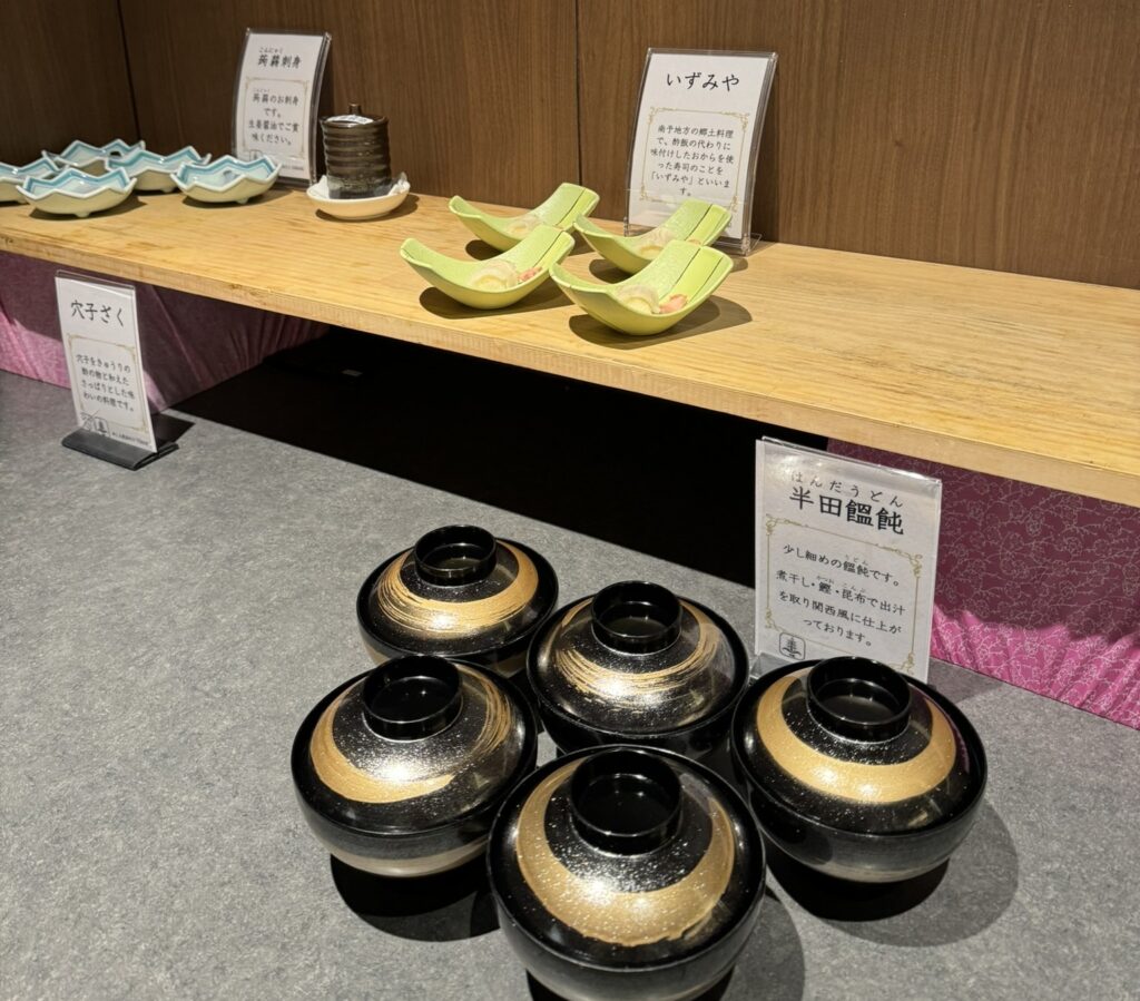 半田饂飩やいずみや、穴子さくなど写真を見てわかる通り、ひとつひとつの料理に説明書きがしてあるのは本当に嬉しい。その料理の特徴や背景を感じながら食事ができるのは本当によかったです。
